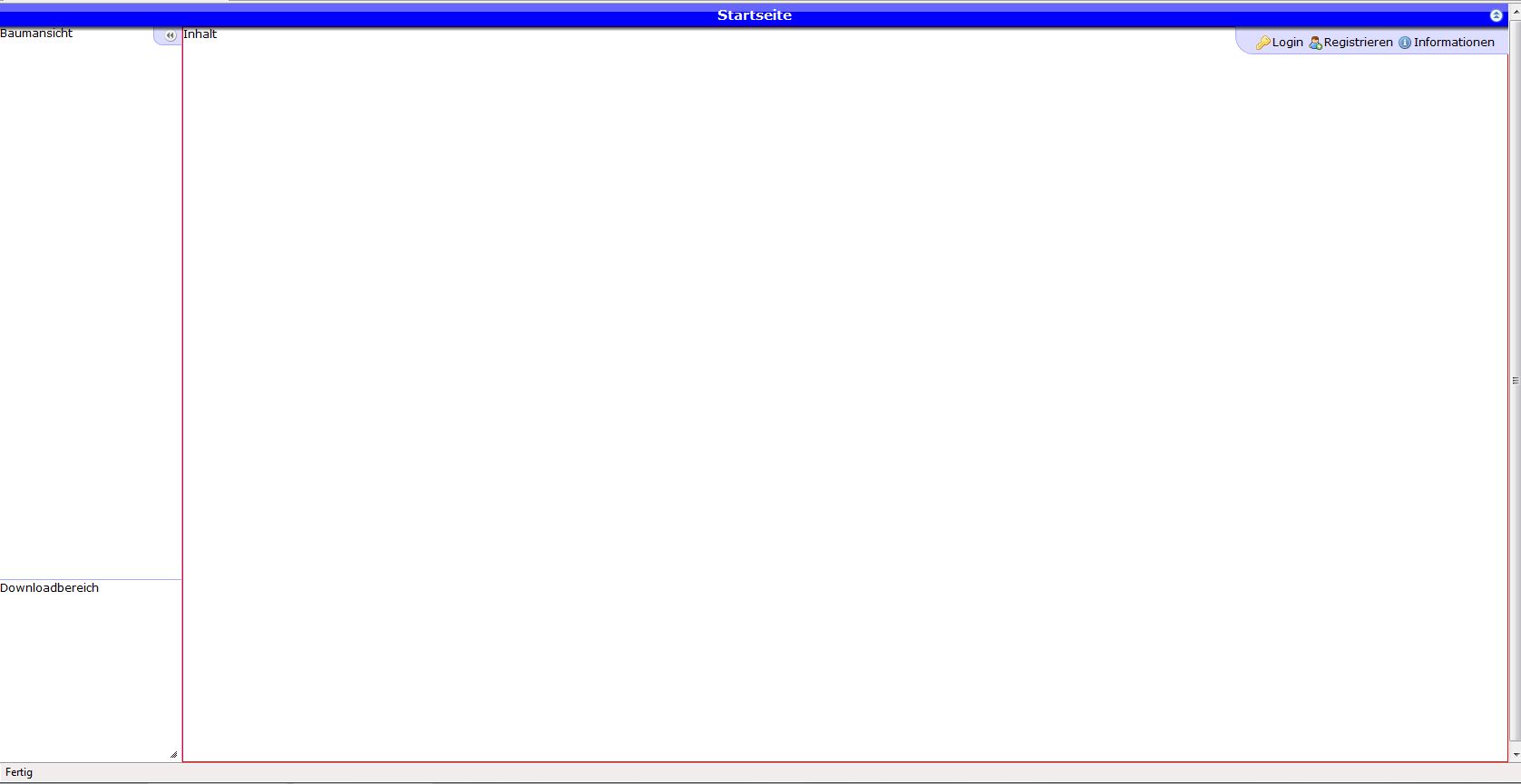 Layout: Zwei Spalten.Header, Links Treeview, rechts Textfeld. oben rechts Login, Info, Accountänderungen.