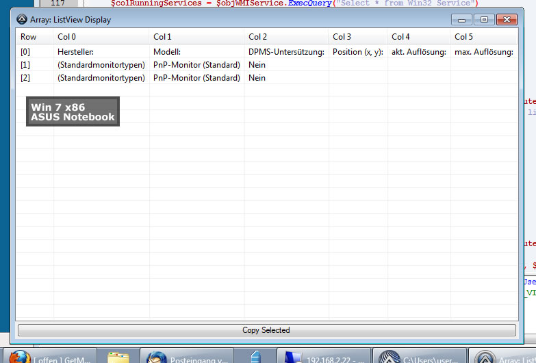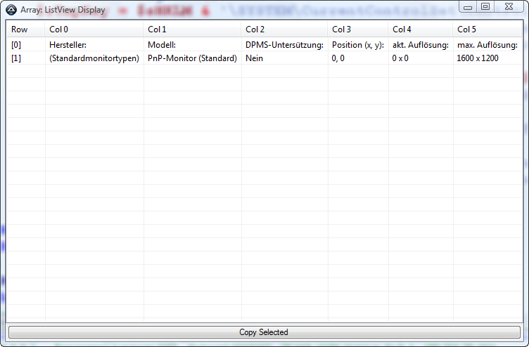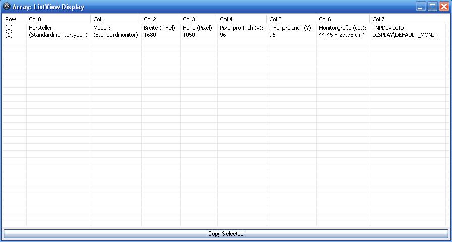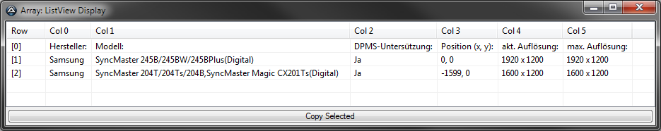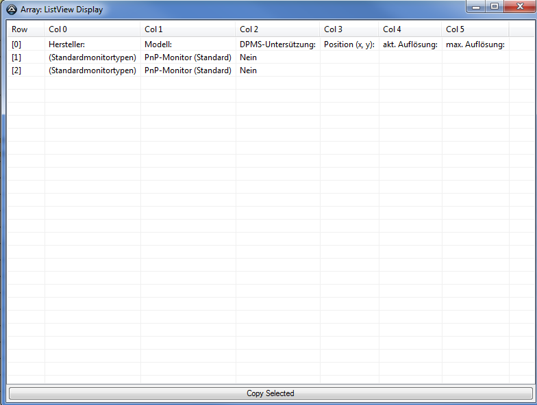 Local $aMonitor[$iCount + 1][6] = [['Hersteller:', 'Modell:', 'DPMS-Untersützung:', 'Position (x, y):', 'akt. Auflösung:', 'max. Auflösung:']]
