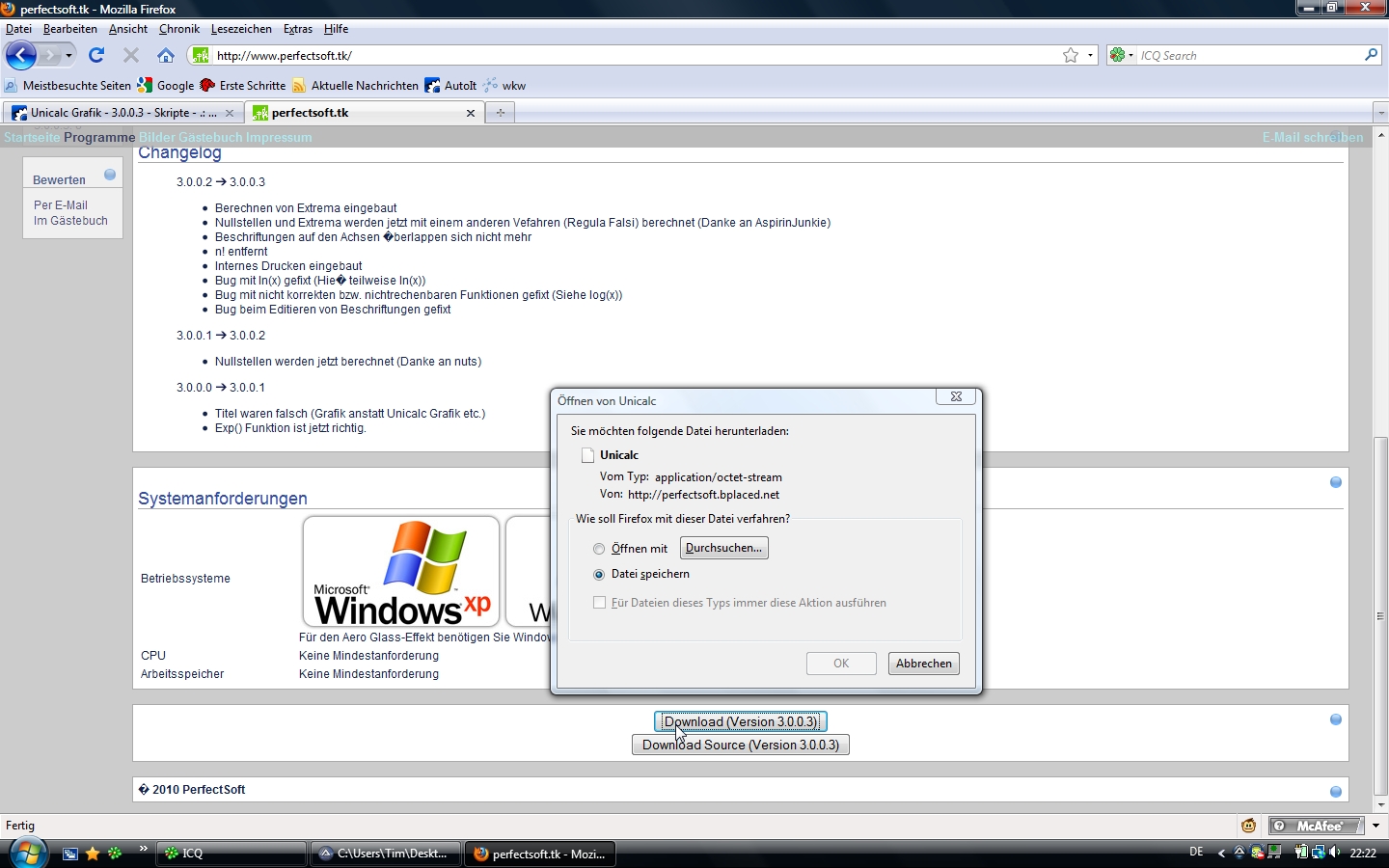 dann kommt ein Downloadfenster, wo ich immer nur die Datei UniCalc.nix downloaden kann... -