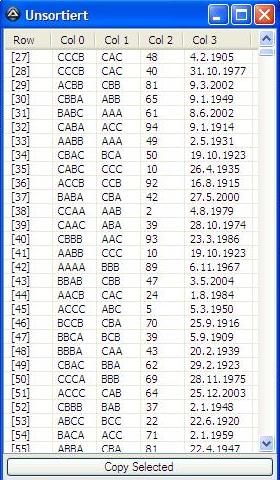 _ArrayDisplay($array, "sortiert nach Col 0 als Text absteigend doppelte Zeilen werden gelöscht (0|1%N|2%D|")