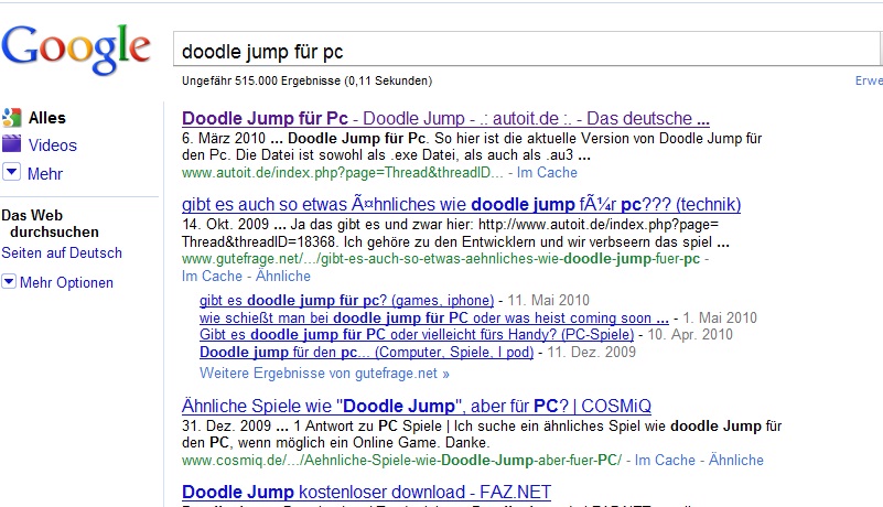 habt ihr eigenglich schon mal mitbekommen das wir, wenn man bei google nach Doodle Jump für PC sucht, auf dem erstem Plaz stehn