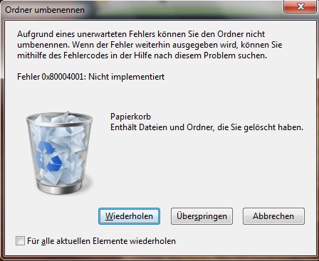 Naja, zumindest der Papierkorbfehler ist logisch: Der Papierkorb darf nicht umbenannt werden.