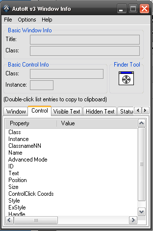 c:\Programme\Autoitv3\SciTE\SciTE.exe starten -> eine .au3 öffnen oder eine neue anlegen und abspeichern -> Tools -> Au3Info (oder Strg+F6) -> FinderTool anpacken und auf den Button ziehen.