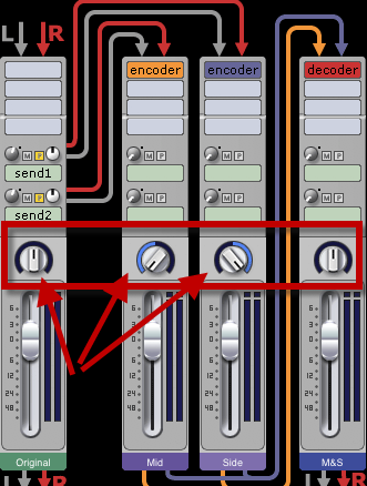 Anstatt einen puren "Lautstärkeregler" zu machen, wäre es absolut cool, wenn man den Drehknopf zum Panning nutzen könnte - das ganze nennt sich Panoramaregler bzw. Panpot.