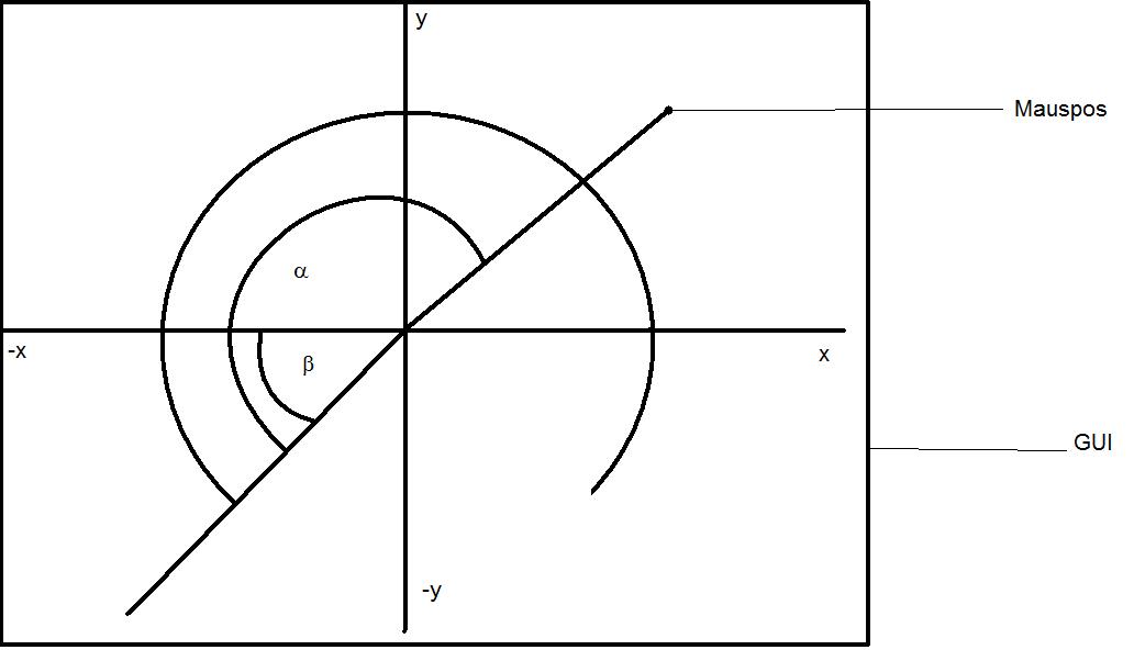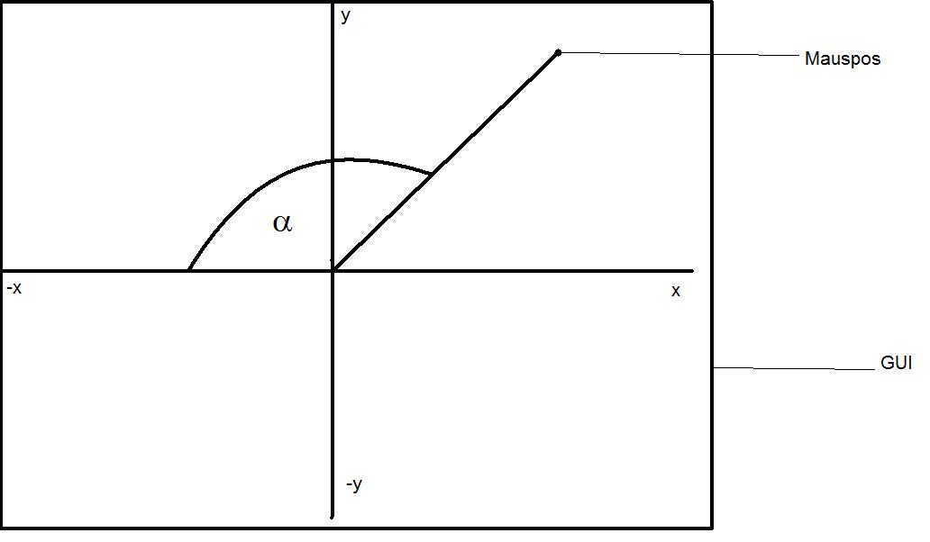 Hast du eine GUI, die in der Mitte des Bildschirmes ist und ein Koordinatensystem draufgezeichnet hat? Und dann willst du den winkel zwischen der Mausposition und der X-Achse bestimmen?