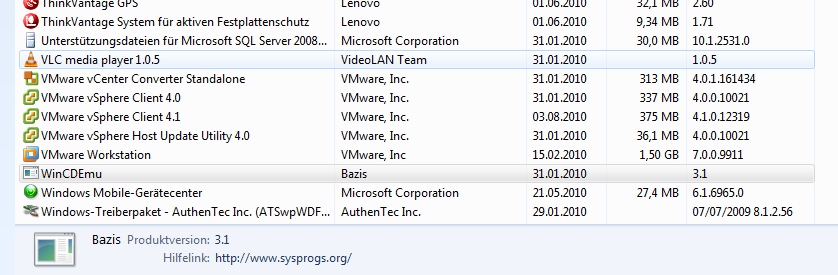 Z.B. hier für WinCDEmu suche nach sysprogs.org ab dem Uninstall Registry Ordner