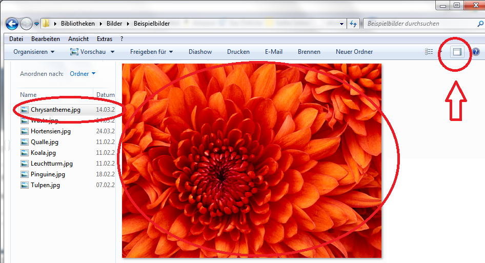 Ich möchte die Datei einsehen ohne Sie zu öffnen.