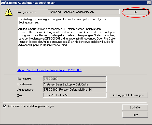 Symantec Backup Exec 2010 R2 "Warnmeldungen bestätigen"