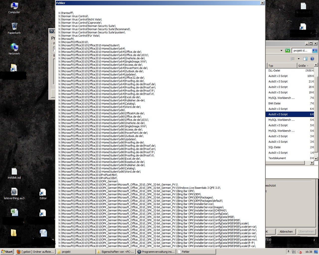 ; Description: Liest rekursiv alle Ordner im Verzeochnis X:\
