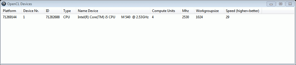 Die Workgroups sind unterteilt in Workitems, die kleinste "Berechnungseinheit". OpenCl verteilt selbstständig den Kernel anhand der Workgroups und Workitems auf die Prozessoren. Durch Abändern der Anzahl der gleichzeitig rechnenden Workitems kann man ggf. die Hardware besser auslasten. Am besten ausgelastet ist die Hardware, wenn alle Prozessoren gleichzeitig ohne Unterbrechungen rennen :rock: