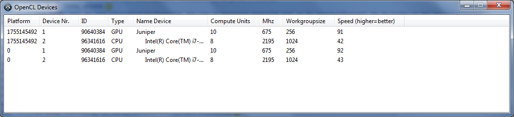 sieht so aus, als ob 2 Platforms erkannt werden, einmal die Nvidia-Karte, einmal die AMD-CPU