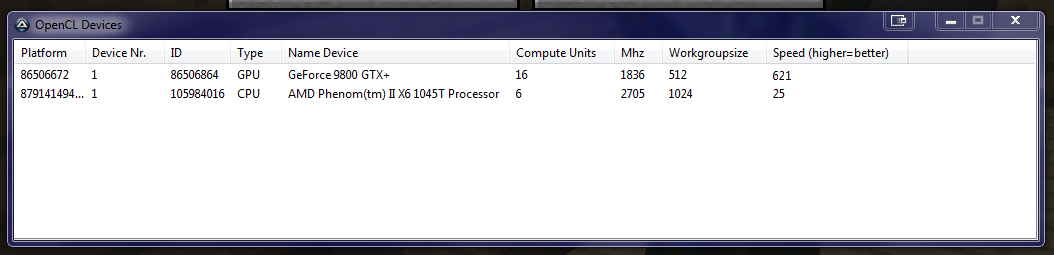 Und für alle, die Probleme mit einer AMD CPU und OpenCL haben: AMD APP CPU SDK Runtime installieren.
