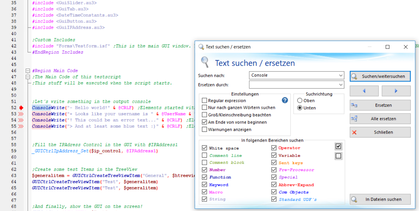 Und bei der Suche in mehreren Dateien werde ich das ganze auch noch einbauen.ZitatFehlt nur noch, dass man bspw. Variablen, Funktionen etc. in allen Dateien ersetzen kann, ohne