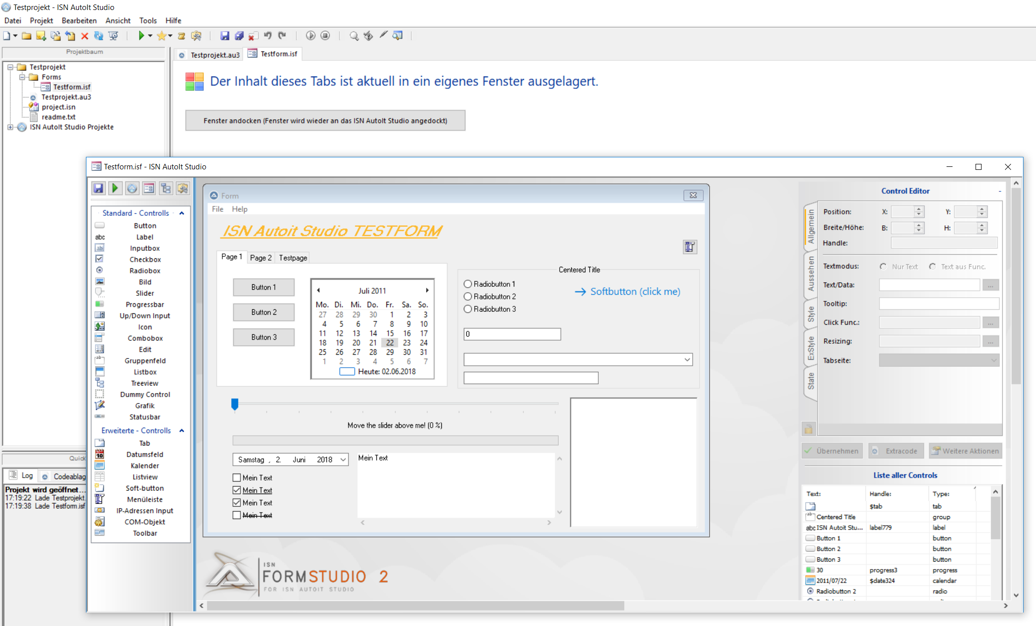Ab Version 1.08 wird es (voraussichtlich) möglich sein, Plugintabs aus dem ISN in ein eigenes Fenster abzudocken. So lässt sich dann zb. das Formstudio in ein eigenes Fenster Packen und zb. auf einen seperaten Bildschirm verschieben.