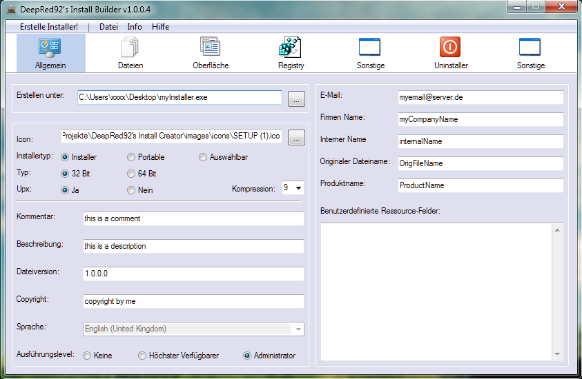 hatte seit längerem vor irgendwann mal einen Install Creator in AutoIt zu schreiben und nun habe ich schon mal die Oberfläche erstellt. Klar gibt es Programme wie NSIS usw., aber man blickt da nicht immer ganz durch.