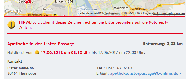 1.) Wie kann ich aus der Webseite http://www.aponet.de/service/notdienstapotheke-finden.html Daten auslesen (siehe Anhang) und diese nach Google Maps zur Routenberechnung übergeben. Die Webseite zeigt leider falsche Entfernungskilometer an und keine Route. Mit der Web-Developer-Symbolleiste (Firefox) komme ich leider nicht weiter. Im Forum habe ich einiges über Google Maps gefunden, jedoch benötige ich automatisiert das die Daten ausgelesen werden und dann in einem neuen Webseite übergeben und dargestellt werden.