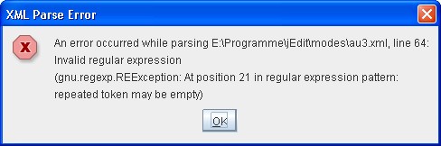 Schön :) Wahrscheinlich lag es daran, daß jEdit mittlerweile statt der gnu.regexp die java.util.regex verwendet.