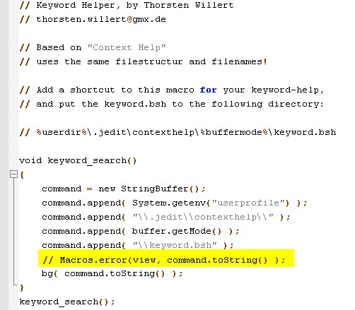 ich arbeite auch häufig mit JEdit und habe Deine Erweiterungen direkt bei mir eingebaut :rock:. Sieht soweit wirklich klasse aus, Danke!.