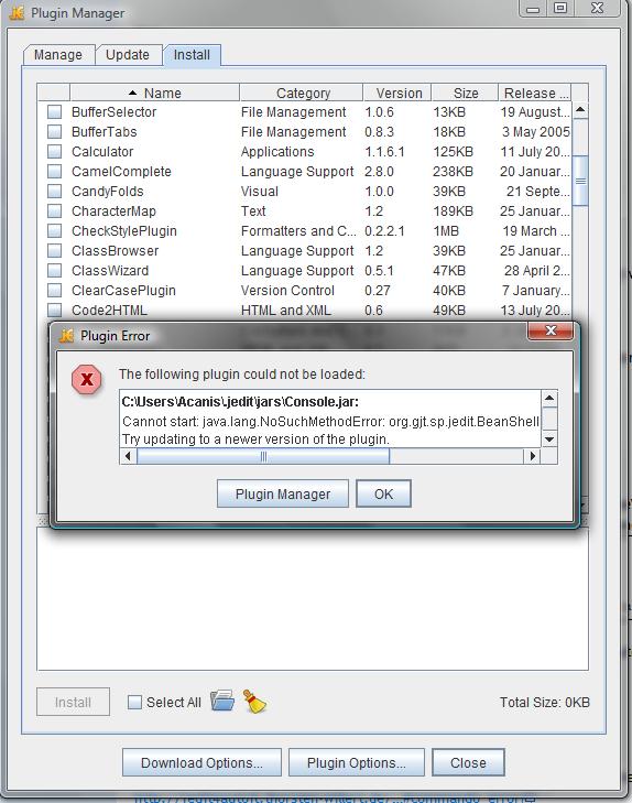 Nu meinte er, die JEdit-Version ist zu alt