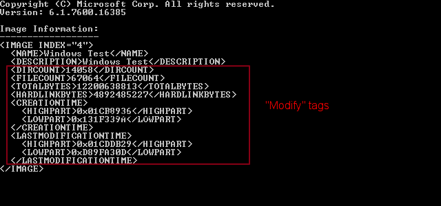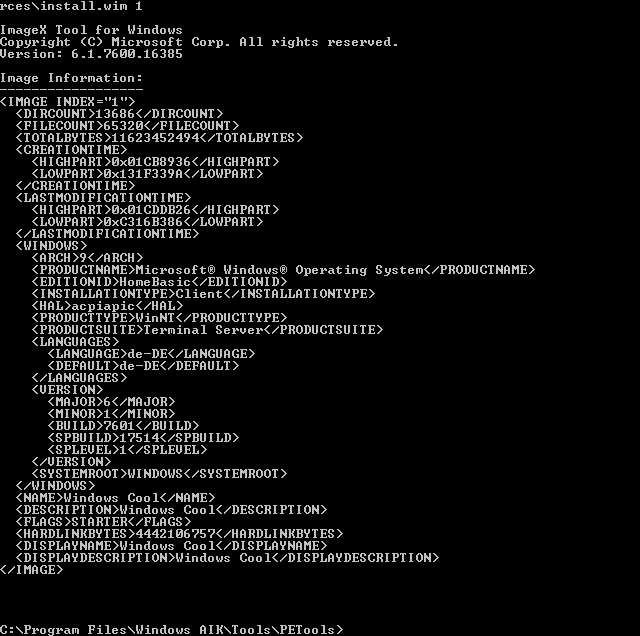 ich möchte die meta daten eines wim files bearbeiten und zwar die, die imagex nicht unterstützt. <Display Name>Test</Display Name> und <Display Description>Test</Display Description>.
