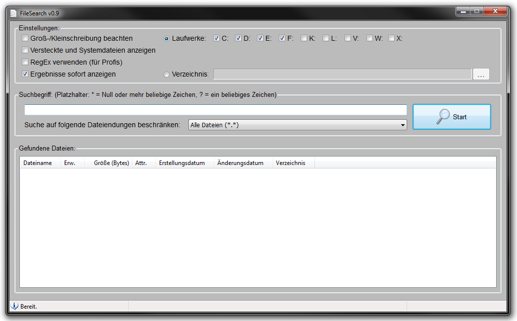 Ich weiß, dass es bereits Hunderte von Datei-Suchprogrammen gibt und es gibt sogar schnellere als dieses hier, aber ich hatte mal Lust sowas selbst zu schreiben und wollte mal sehen, wie schnell oder langsam das mit AutoIt wird.