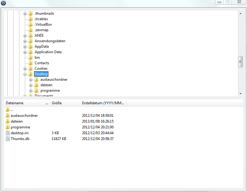 Navigiert wird über eine TreeView, über die auf alle Laufwerke und Unterordner zugegriffen werden kann. Mit Klick auf ein Item wird der jeweilige Ordner in der Listview angezeigt.