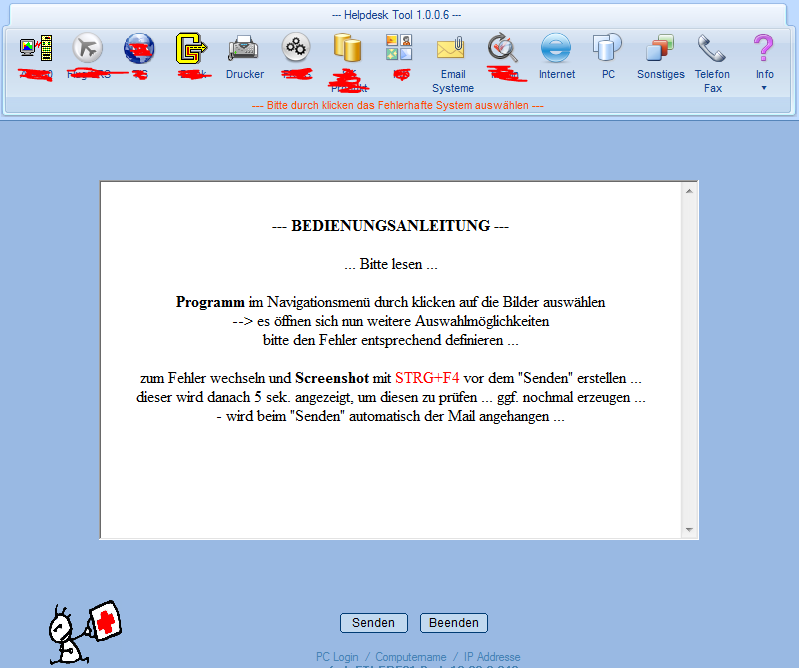 Dank Water und seinem richtig guten Outlook UDF habe ich eine GUI gestaltet, aus der je nach Vorfall/Störung eine Mail an einen bestimmten Mailverteiler bzw. Personen geschickt wird inkl. cc und bcc.