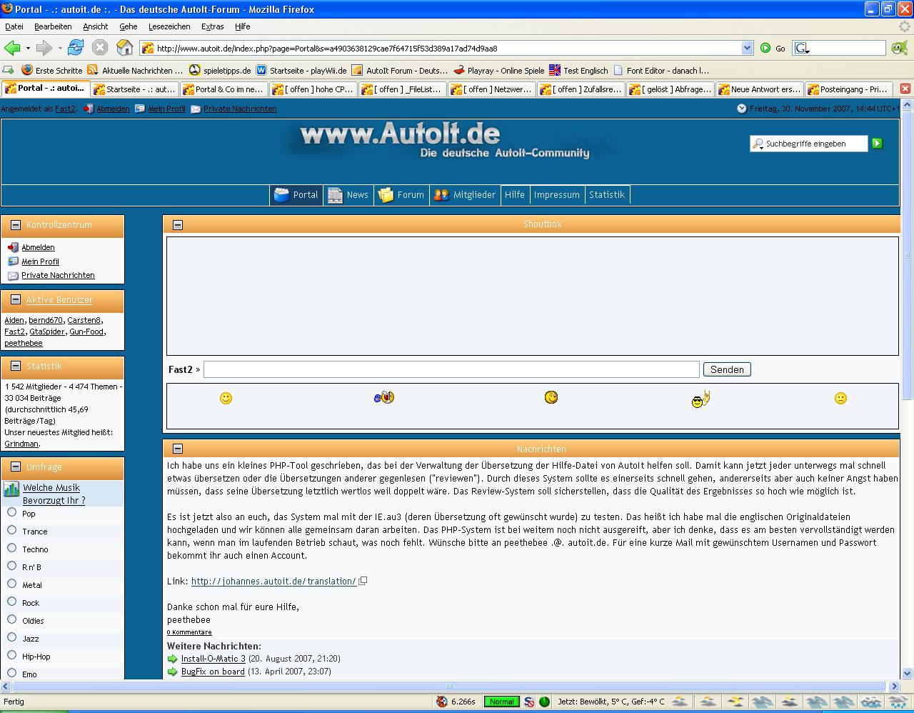 Die Shoutbox muß wesentlich höher. Das linke Fenster (linker Frame) ist fehlerhaft, aber sicherlich wieder nur bei mir.