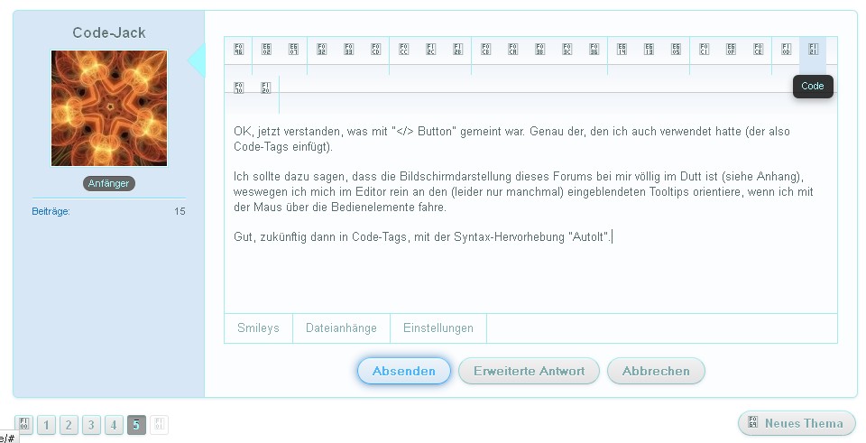 Besser ist Spoiler und dann den </> Button benutzen. Wenn du den Code Button </> benutze, brauchst du aber auch keine Spoiler. Der Code wird automatisch verkürzt.
