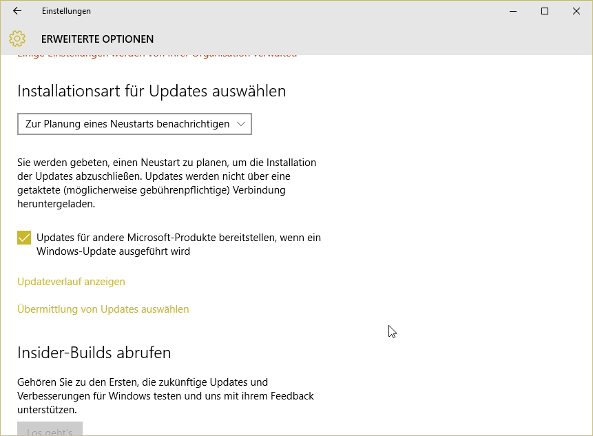 Und während ich hier geschrieben habe hat sich der Updater schon wieder selbst gestartet, Ich weiß ja, daß mein Volumen für 30 Tage Highspeed deutlich zu niedrig ist, käme aber (so wie früher auch als ich 5 GB lt. Vertrag, tatsächlich aber ~100 kBits hatte) mit 64 kBit/s aus wenn nicht der Updater stören würde. Selbst wenn ich den Updater nicht abschiesse über 20% für Upgrade auf 1511, 10586 ist er noch nie gekommen. Wenn ich dieses Upgrade (oder sind es schon 2) verweigern möchte, müßte ich mir ein Skript schreiben um wuauserv nach jedem Start abzuschiessen. Dann kommen aber auch keine normalen Updates, was ich auch nicht möchte.