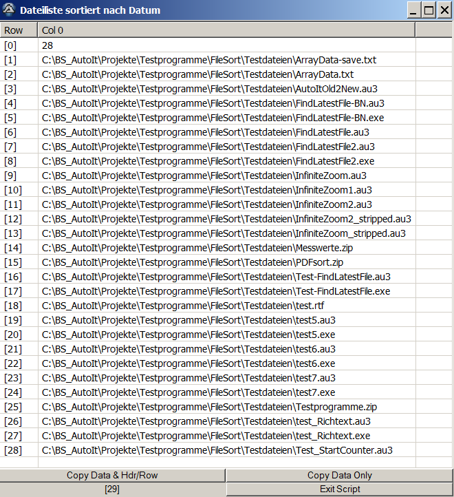 Wie Du siehst, verändert sich durch die Sortierung nichts :/. Möglicherweise habe ich da aber auch etwas falsch verstanden. Die Dateien haben unterschiedliche Erstellungs- und Änderungsdaten - bei meinem Skript läuft das Sortieren korrekt ab. Vielleicht kannst Du das noch mal checken.