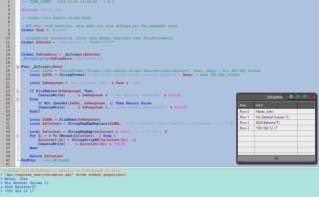 $sURL = "https://tel.search.ch/api/?maxnum=1" & $was & $key