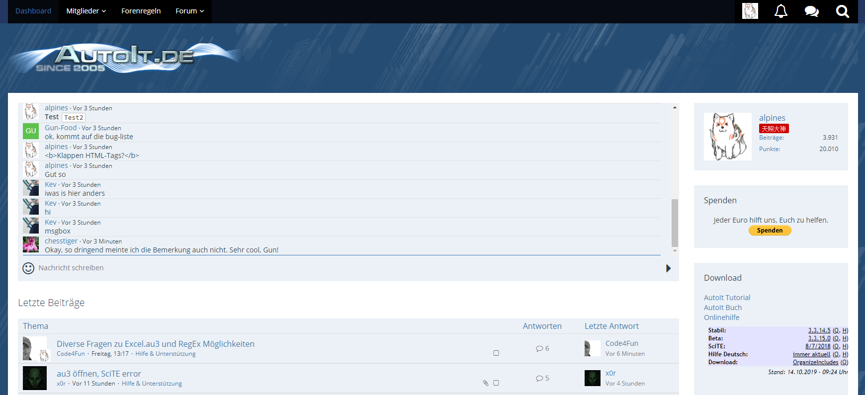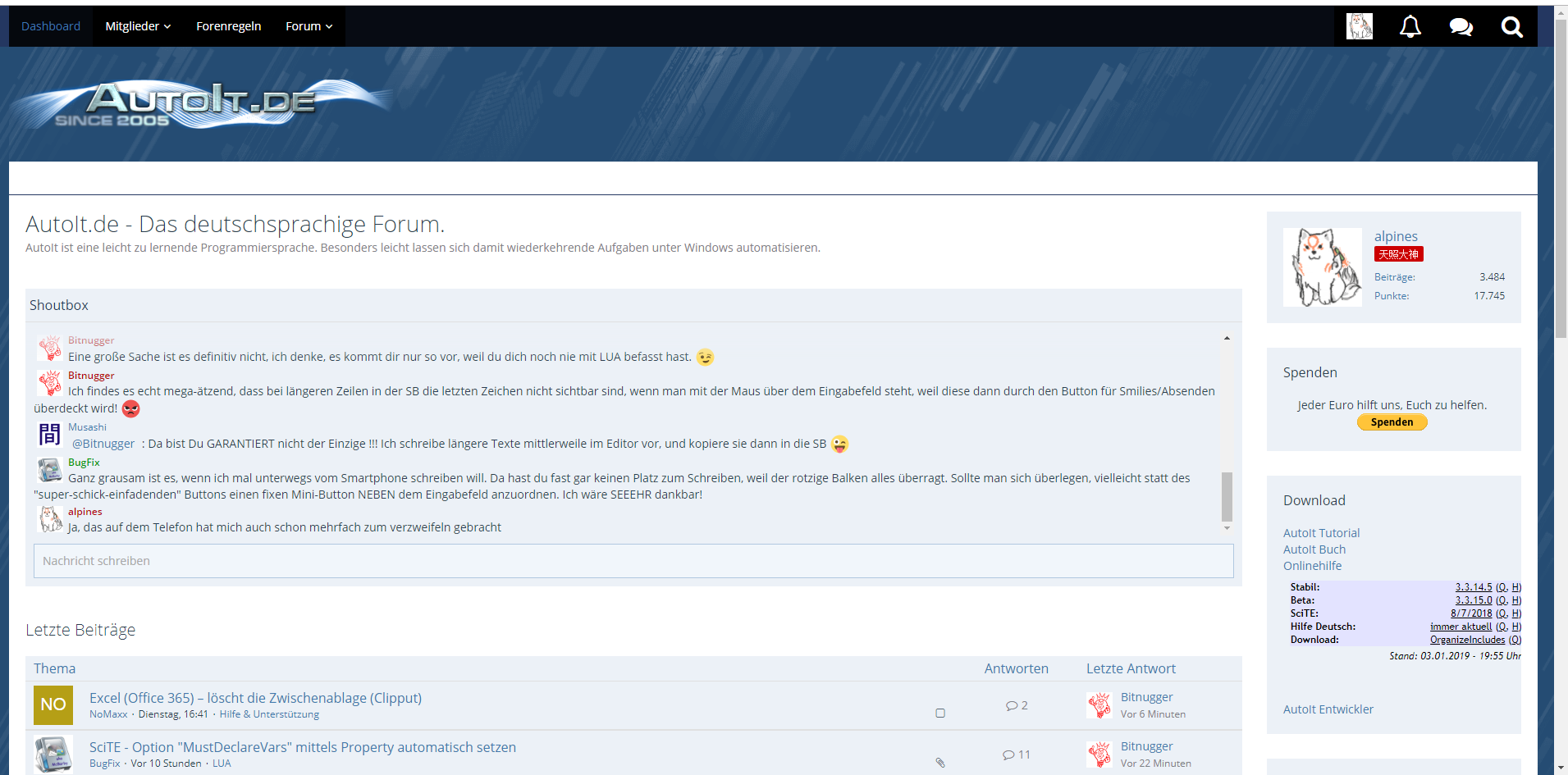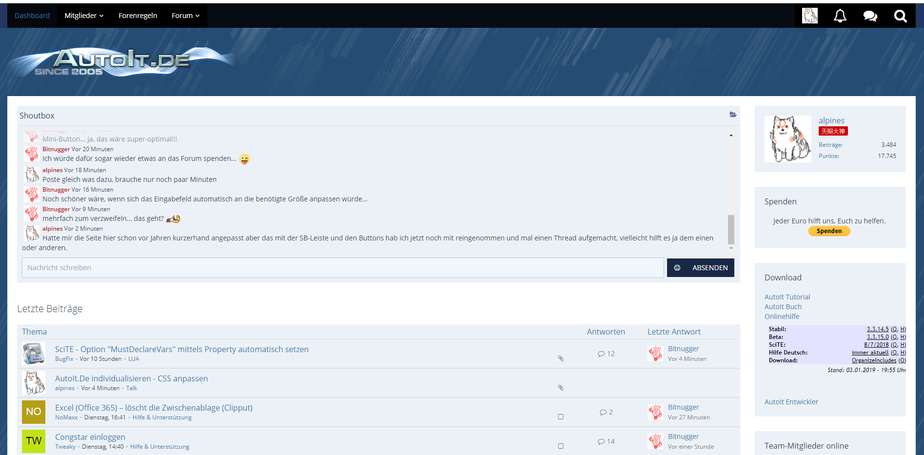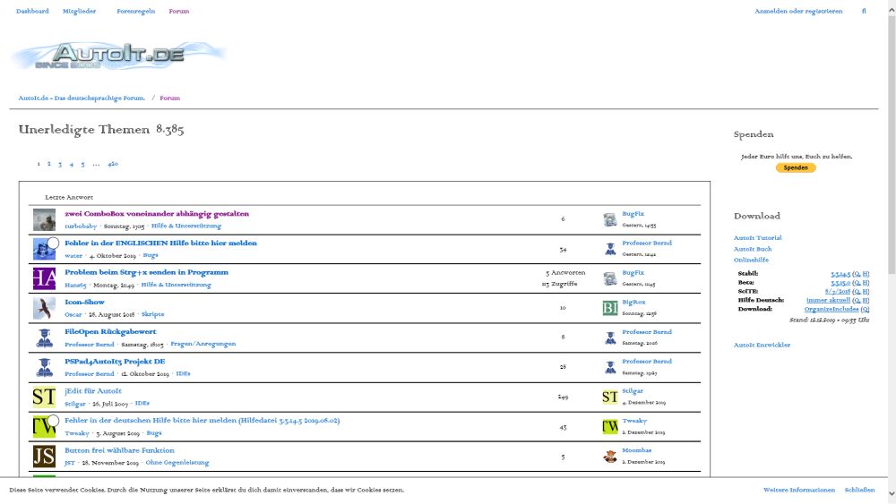 Ausgangssituation ist die normale AutoIt.De Seite.