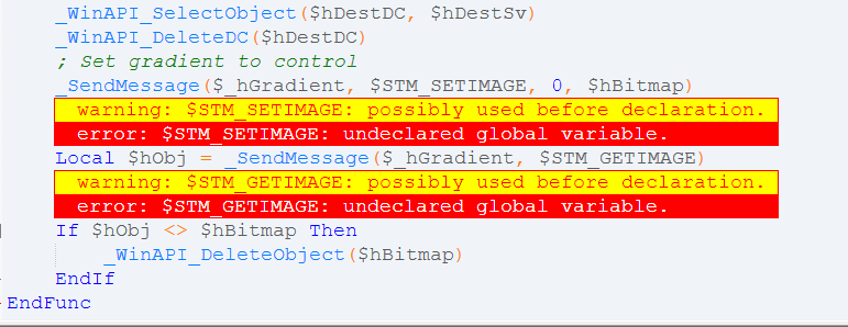 Vielleicht mit _GDIPlus_LineBrushSetPresetBlend aber wie lese ich die RGB Werte aus und bekomme den Balken mit den Farbrauten hin
