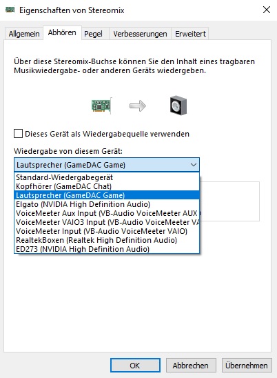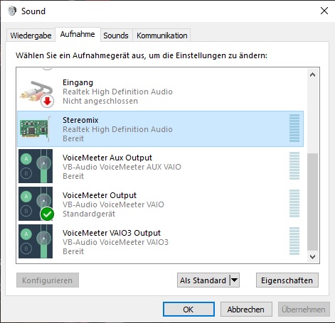 Ich bin mit Windows 10 unterwegs und möchte in der Soundeinstellung unter Aufnahme beim Realtek Stereomix (Bild 1) eine Quelle auswählen. Nach langem Suchen und Lesen habe ich in einem Forum ein Skript gefunden und dies mit Trial und Error versucht an meine Bedürfnisse an zu passen.