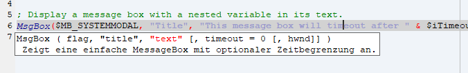 - CallTipViewer arbeitet bisher nur mit den offiziellen AutoIt Funktionen. Das heißt, nur für Funktionen, die in der au3.api, bzw. in der AutoIt-Hilfe stehen, werden CallTips angezeigt.