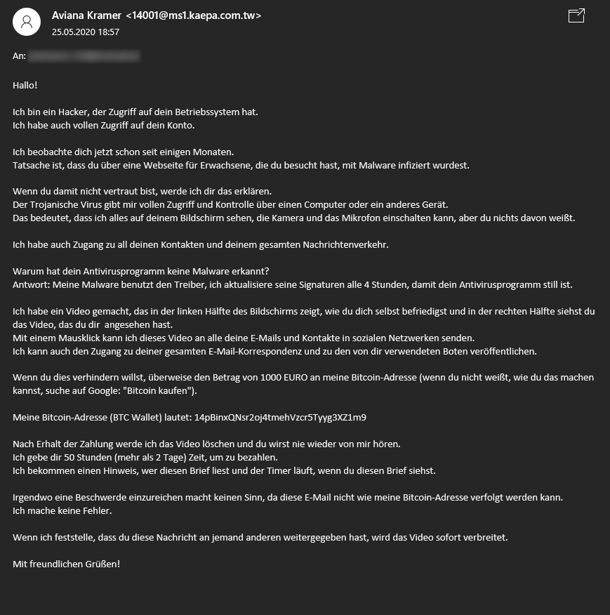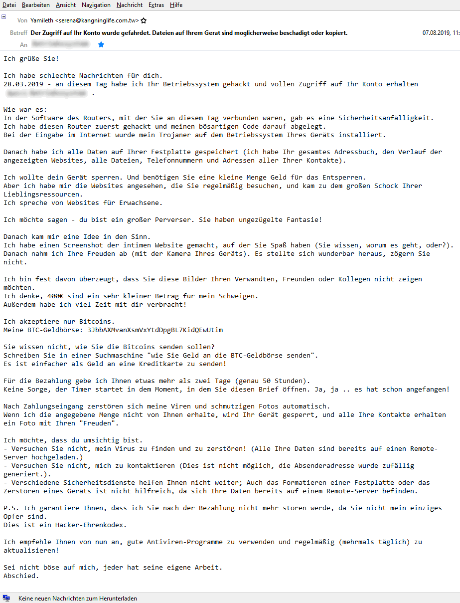 Beim Aufräumen meines E-Mail-Papierkorbs habe ich diese Benachrichtigung gefunden, dass ich gehackt wurde und wollte euch teilhaben lassen. Also: Immer schön die Suppe aufessen, damit ihr nicht auch gehackt werdet. ![]()