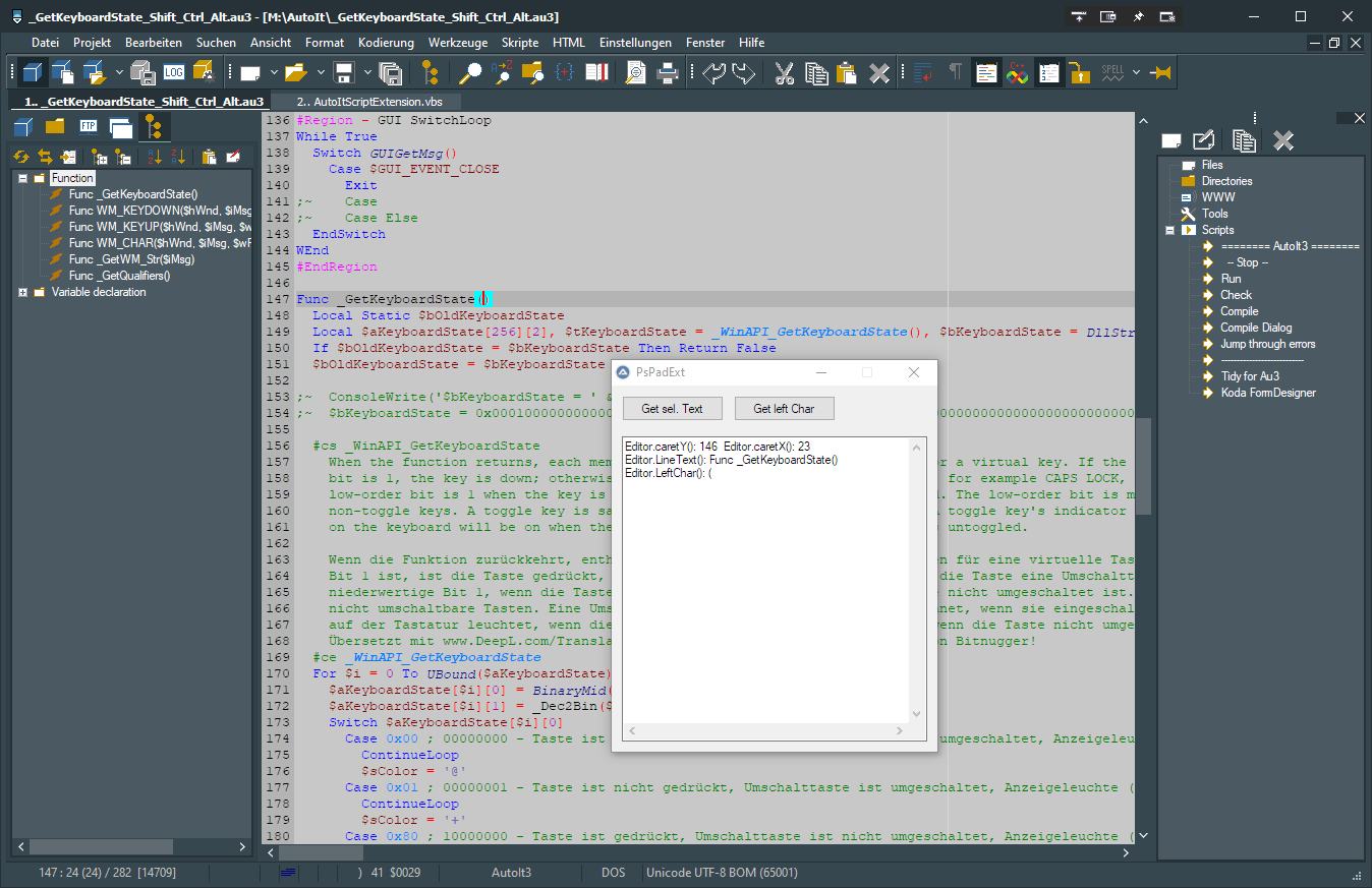 Dieses mal geht es um Verbesserungsvorschläge zu einer Funktion "KeysForLeftParenthesisWerePressed()", in der verschiedene Tasten mit _IsPressed() abgefragt werden. Es gibt 1 Zeichentaste (Char key) und 3 Steuertasten (Control keys). Damit es nicht zu kompliziert wird (für mich)