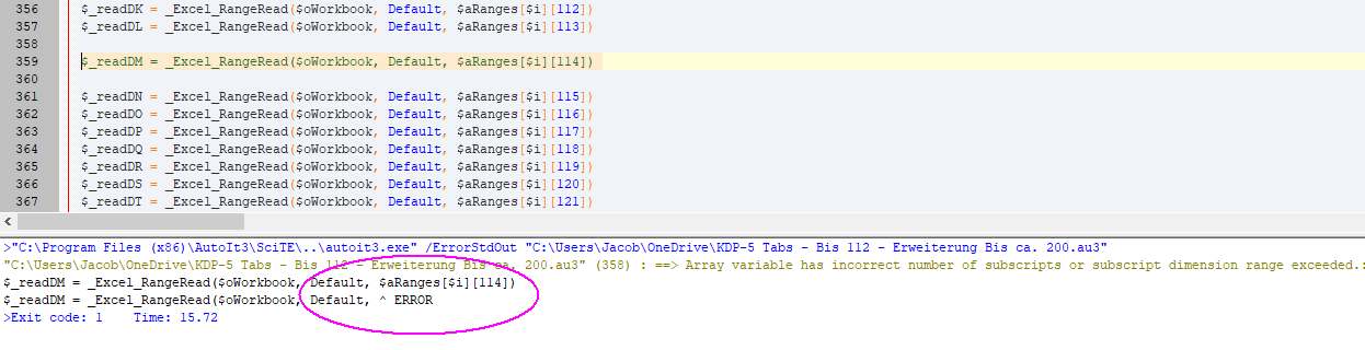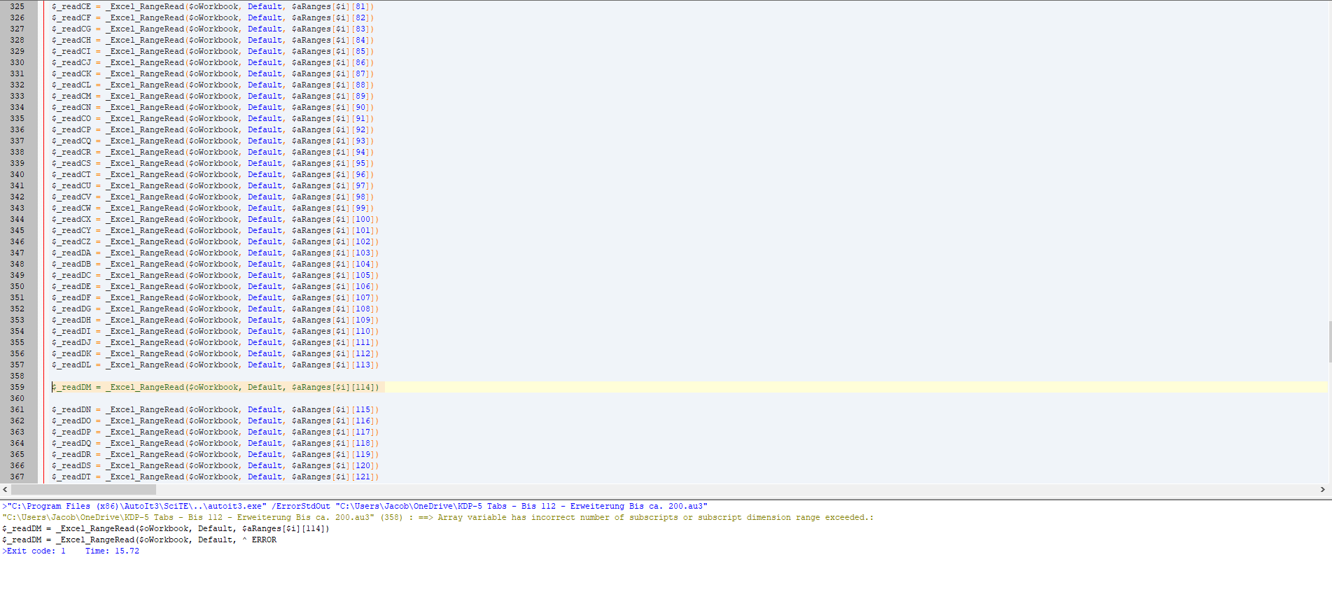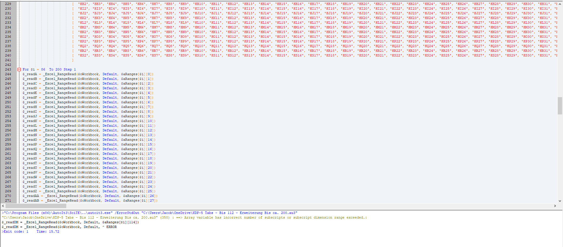 Jch bekomme aber jetzt folgende Fehlermeldung, nach der Erweiterung: Array variable has incorrect number of subscripts or subscript dimension range exceeded.