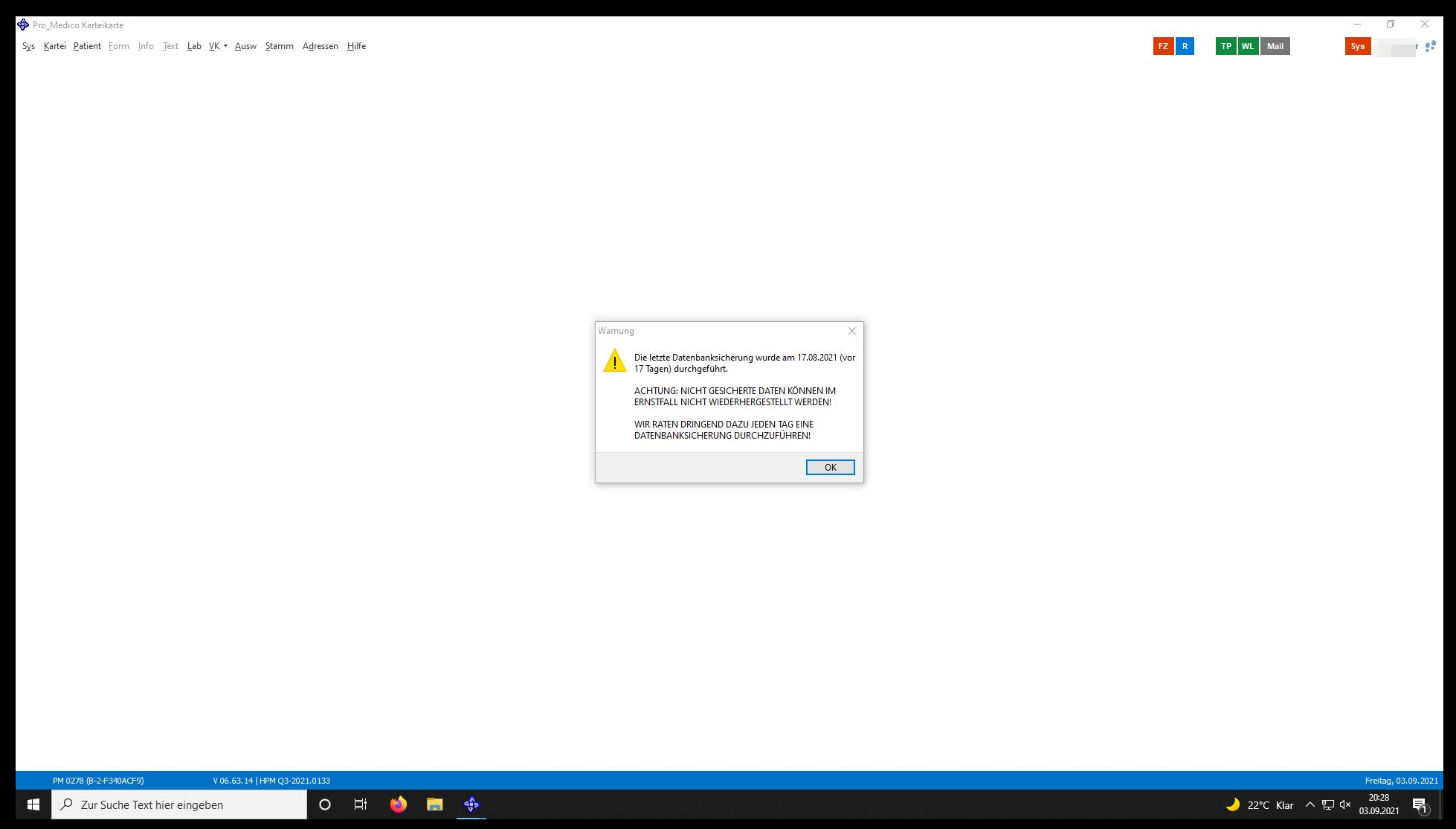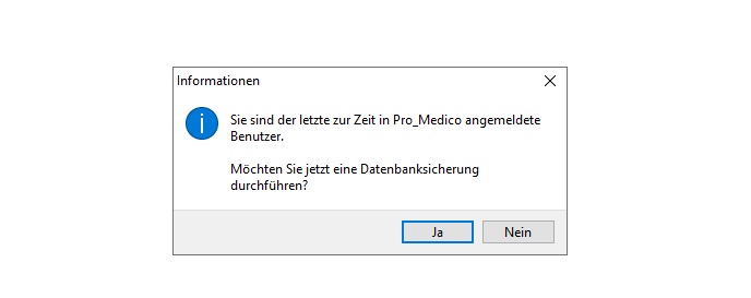 - Wenn beim Beenden der Anwendung, Fenster auf Datensicherung notwendig? Dann bestätigen, Sicherung abwarten