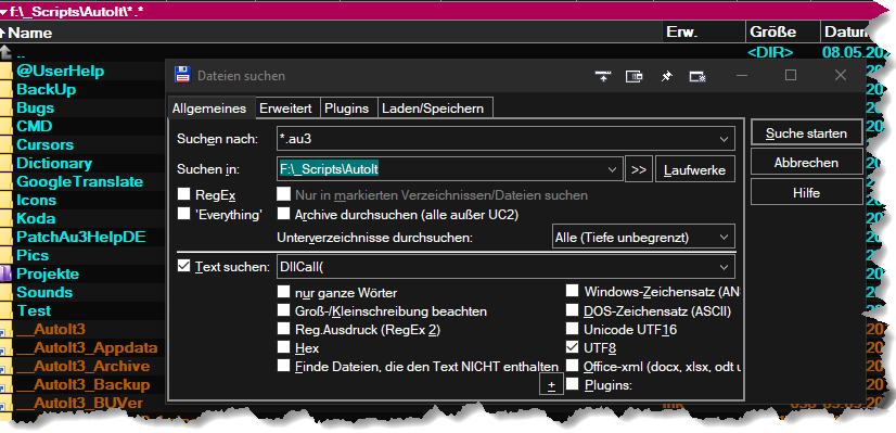 Man kann dort aber auch z.B. *.txt, oder sogar mehrere Filter (Dateitypen), getrennt durch Semikolon, eintragen. Beispiel : *.au3;*.txt