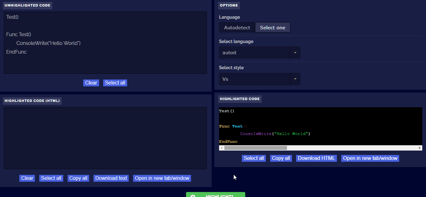 Um VBA-Code (Excel, Word und PPT) farbig in Word einfügen zu können, nutze ich ein eigenes Add-In (https://www.rholtz-office.de/vba-html). Gibt es sowas auch für AutoIt? Wäre doch schön, wenn ich eine gute Dokumentation erstellen könnte, da wäre der AutoIt-Code in Farbe besser als schwarz-weiß.