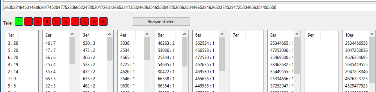 Analysiert werden nur die Gruppierungen, die ohne Rest teilbar sind und wo die Buttons grün sind.