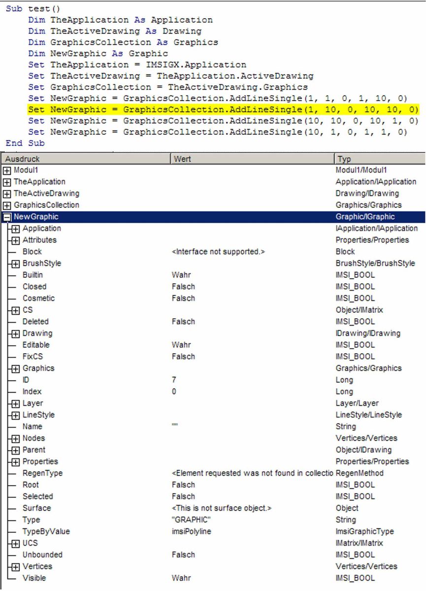 Set NewGraphic = GraphicsCollection.AddLineSingle(10, 10, 0, 10, 1, 0)