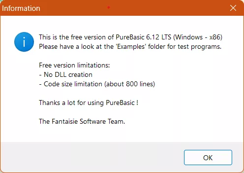 • man kann Pure Basic durchaus kostenlos verwenden mit folgenden Einschränkungen: