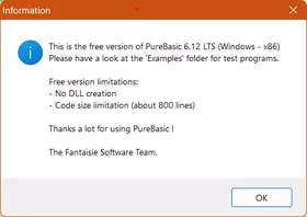 • man kann Pure Basic durchaus kostenlos verwenden mit folgenden Einschränkungen: