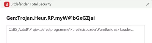 da AutoIt oft auch von "bösen" Menschen mißbraucht wird und die Erstellung einer [compilierten] exe-Datei immer bedingt, dass die autoit3.exe includiert wird als Wrapper des Scripts, ist die Viren Erkennungs-Signatur von autoit erstellten exe-Dateien immer im Fokus der Anti-Viren Software Hersteller. Da hat man es schon schwer, sein Werk so zu erstellen, dass es auch verbreitet werden kann ohne dass jeder Virenscanner Alarm schlägt.