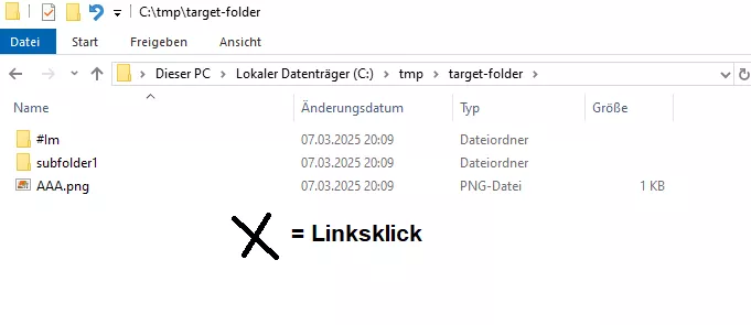 2. Navigiere im Windows Explorer nach C:\tmp\target-folder\#Im\subfolder1.