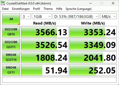 Meine andere M2-SSD (per PCIe 4 angebunden) schafft auch schon 1.5 GB/s. Bei mir wurde die Neue halt eine 5er, weil der