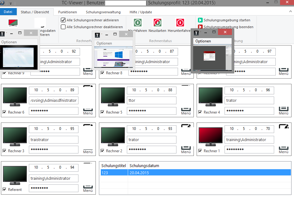 Für eine Schulungsverwaltung sollen Vorschaubilder dargestellt werden. Hier zwei Screenshots.